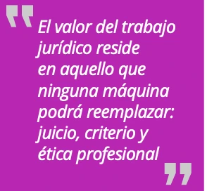 Al final, el valor del trabajo jurídico nunca residirá en lo que una máquina pueda hacer, sino en aquello que ninguna máquina podrá reemplazar: juicio, criterio y ética profesional.