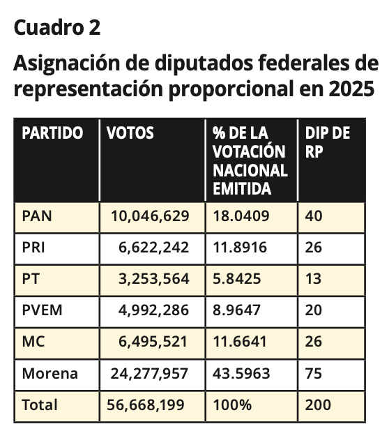 El problema del sistema electoral mexicano es que desde 1987 se estableció que con la misma votación que los partidos obtienen en las elecciones de diputados de mayoría