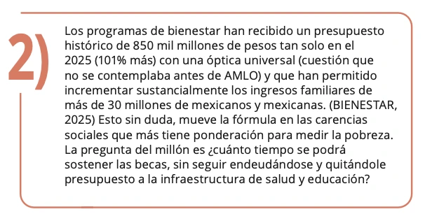 que pesa y mucho. Quienes, desde su privilegio, pueden asegurar que el mexicano es pobre porque quiere y que como economista solo habla de datos duros, sin abordar la verdadera problemática, surgen cuestionamientos, que como ciudadanía nos debemos hacer. Siempre he