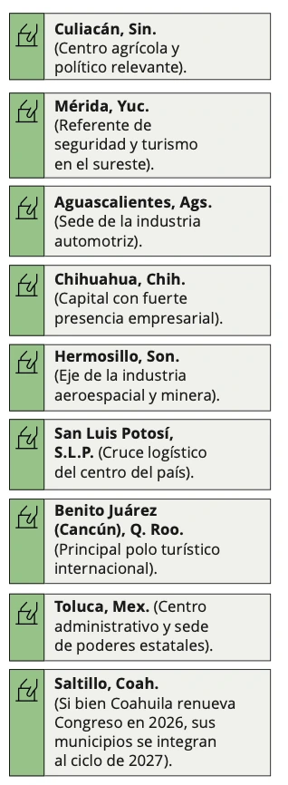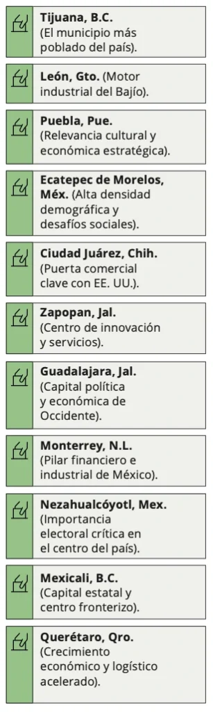 Por su peso poblacional, aportación al PIB y complejidad política, estos son los 20 municipios más relevantes que tendrán elecciones para presidencias municipales y cabildos: